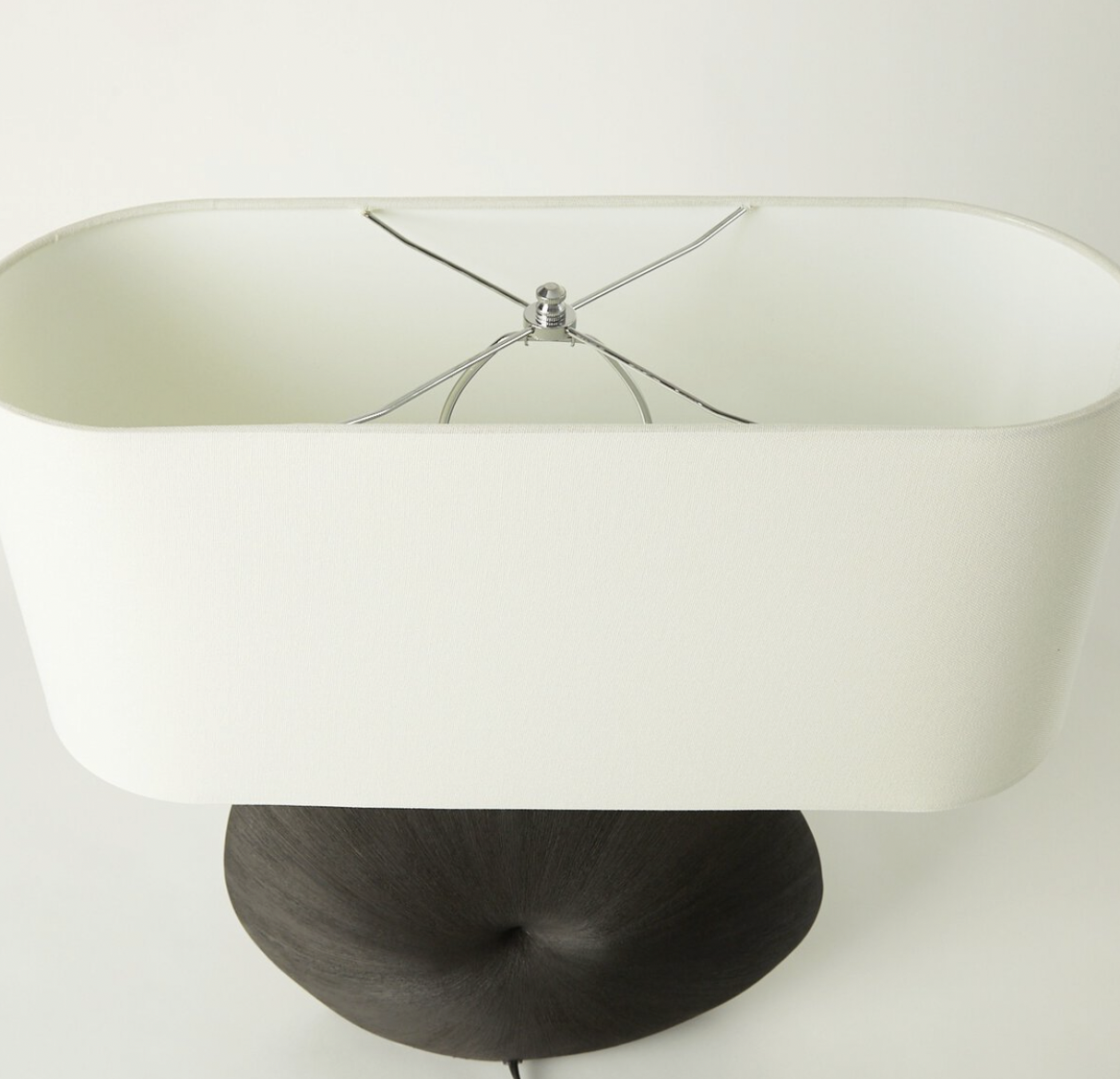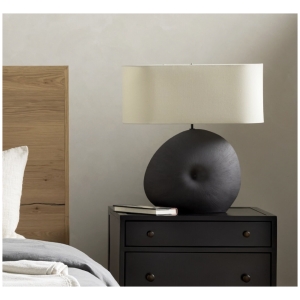 Bringing to mind found treasures washed ashore, the organic shape of this lamp base is crafted from smooth ceramic and topped with a linen shade for added contrast. Slight variation is to be expected from piece to piece due to the handcrafted nature of ceramic.