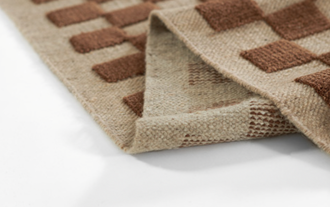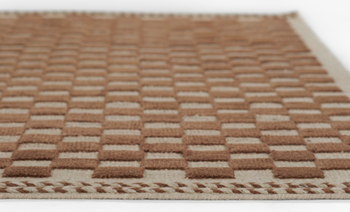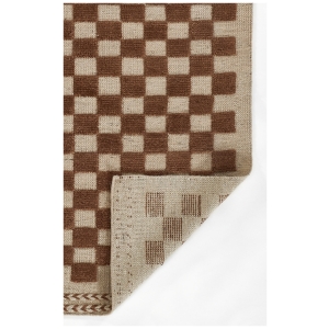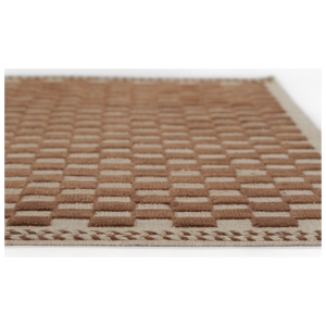 Flat-woven with pile, this design provides a unique interpretation of the pattern while adding in braided stripe edges. Since the warm autumn hue is inspired by nature, it feels timeless and versatile. Made of 100-percent wool and handwoven in India, the global influence can be felt in every aspect of the design.