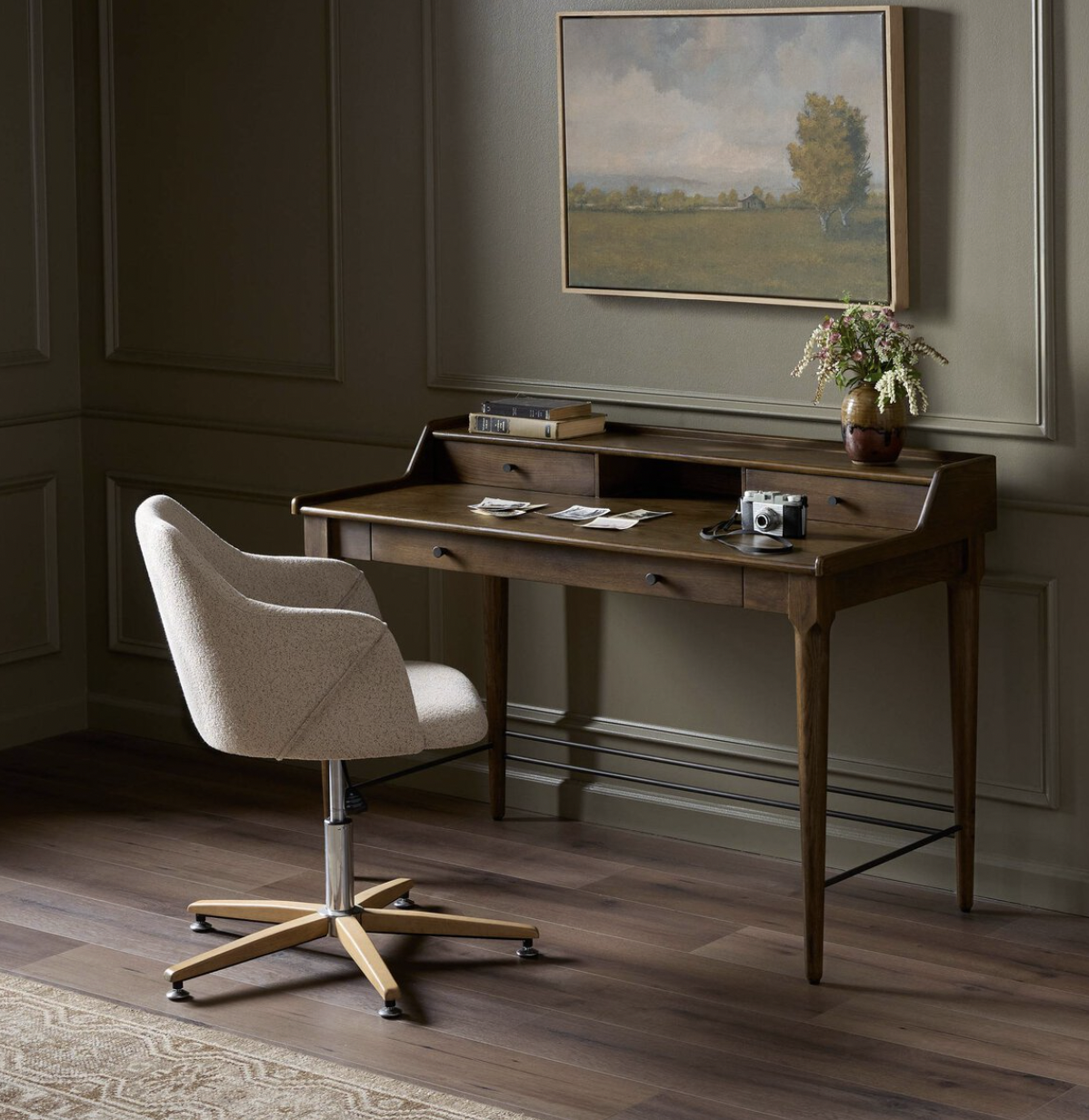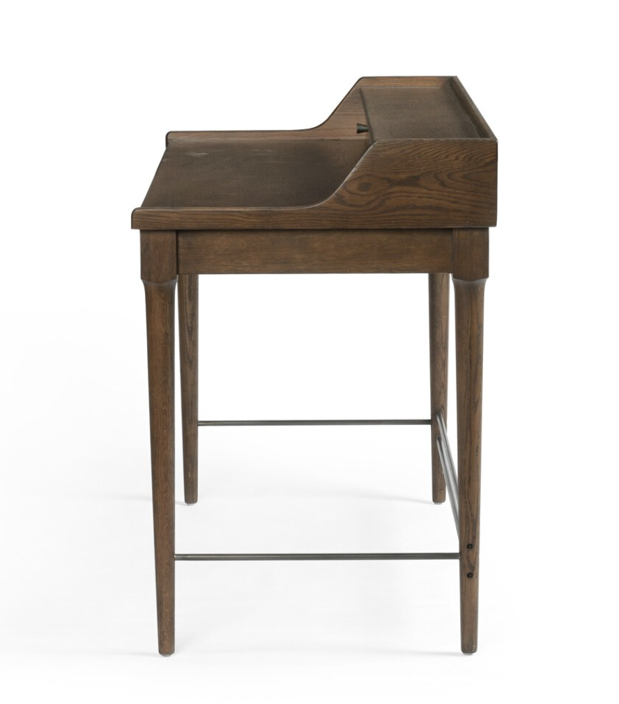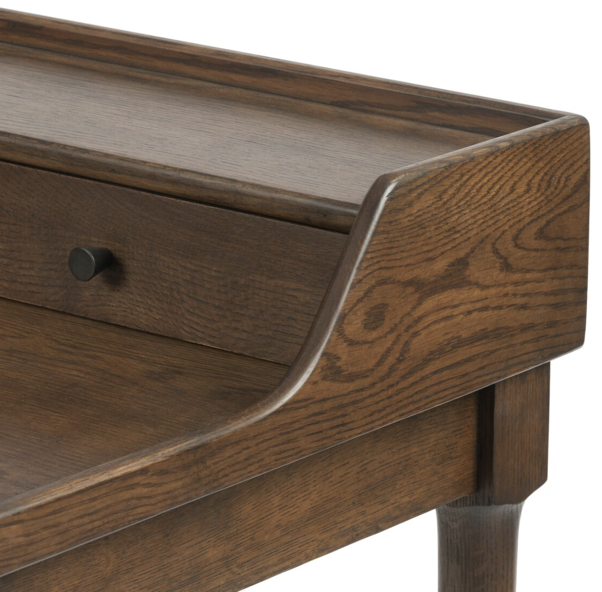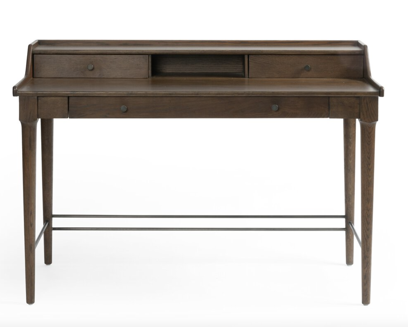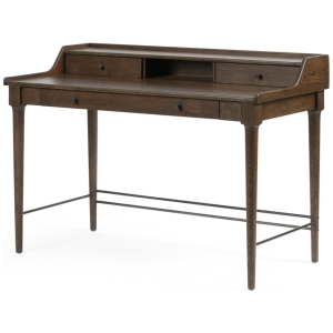 Simple beauty in a refreshed writing desk. Dark-toasted oak’s rich brown finish speaks to mid-century inspiration, while plenty of storage meets the needs of a modern office.